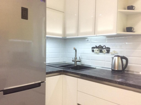 Кухня студия+спальня. Дизайнерский ремонт. Без балкона. Мебель, техника. Кровать в спальне, диван на кухне. Душ – не ванна! Один мощный кондиционер в коридоре. Посудомойка. Без животных!