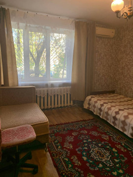 Лузановка, первый ряд домов, 3/9, большая комната в хорошем состоянии, своя кухня выгорожена и оборудована, в комнате необходимая мебель, холодильник в данный момент не работает, санузел общий! бойлер есть, отопление центральное, длительно, залог можно удобно разделить только звонки ещё
