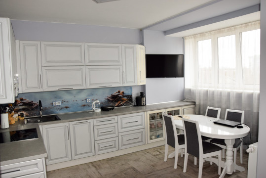 Квартира площею 100м2 з 4-ма окремими кімнатами та холом 22м2, трьома великими балконами з видом на озеро. Квартира з гарним ремонтом та меблями.
