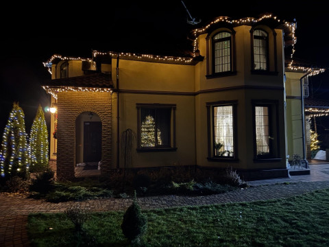 СОБСТВЕННИК Продам роскошный особняк в 45 км от Киева, 2 эт, 210 м, вода, свет, отопление комбинированное, 0,62 га земли, мебель и техника премиум класса, баня, барбекю, вольер, гараж на 2 машины и многое др., ландшафтный дизайн по всему периметру усадьбы, лес и Десна 800 м, все подробности по телефону, telegram ещё