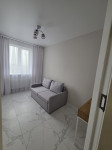 В квартире - кухня-гостиная с диваном, спальня с кроватью и шкафом, а так же детская, в которую могут доставить кровать! Есть гардеробная и небольшой застекленный балкон.