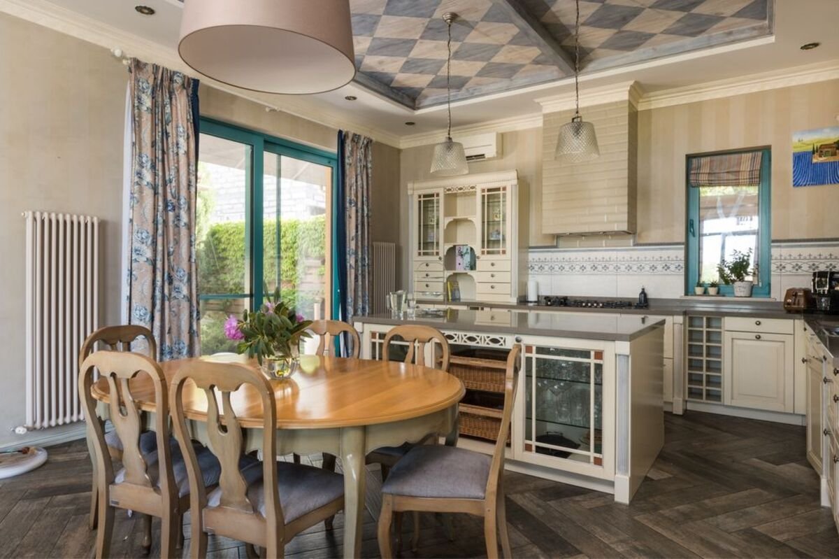 В будинку 4 спальні, велика вітальня 50 кв.м., санвузли на кожному поверсі, 2 гардеробні, топкова, та балкон. Функціональна та обладнана кухня зі всією необхідною технікою.