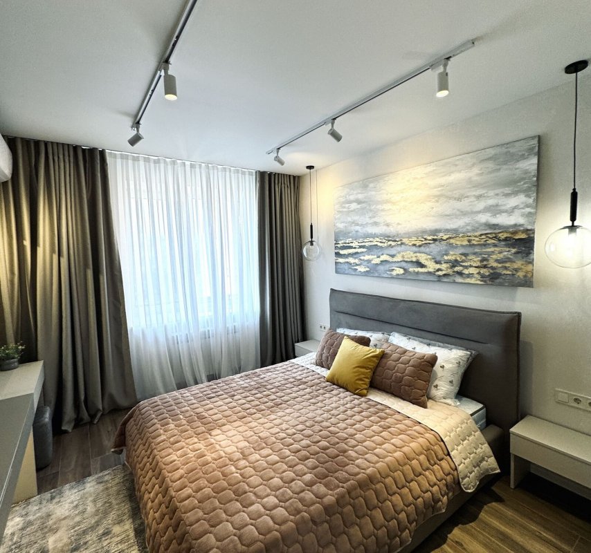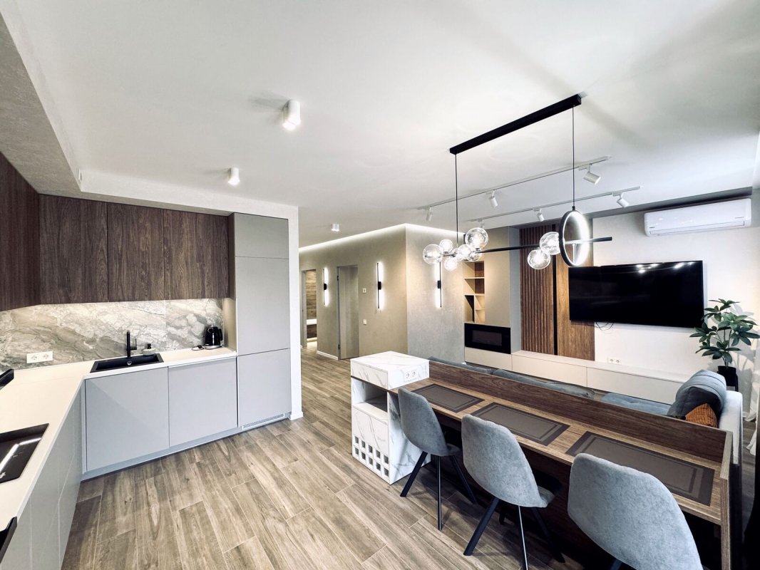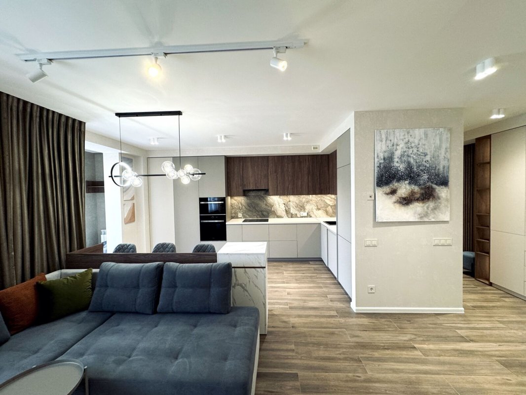 Площадь 70м2, двухсторонняя планировка: просторная кухня - гостиная с балконом, отдельная спальня, санузел, гардеробная.