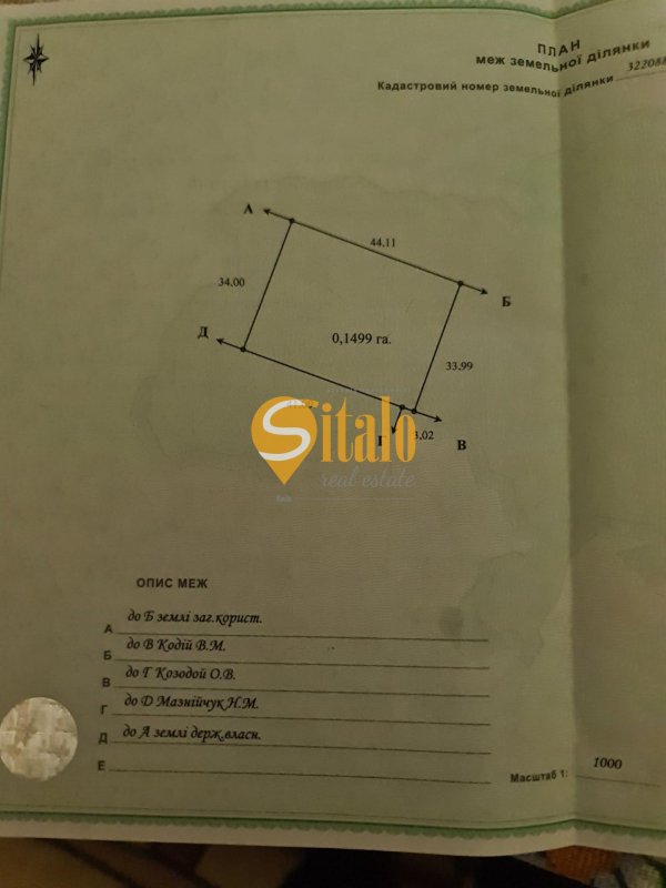 Ділянка площею 15 соток в новому масиві с. Вишеньки. Поруч КМ " Золоче ", Гнідин, Проців. Повз ділянку пропходять всі комунікації: світло, газ. Правильна форма ділянки, друга від асфальтованої дороги. В пішій доступності водойма з пляжами та місцем для риболовлі, продуктовий магазин, зупинки громадського транспорту. Чудовий варіанти як під бізнес так і під побудову власного житла. Код об'єкту-16775 Add Id793780 Add date12.12.2025 Renewal date16.04.2026 Share 2,000 $ Agent: Антон Машенцев Agency 'Sitalo Real Estate' Message |