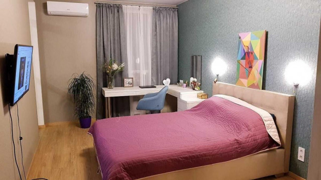 Авторский ремонт, продуманы все детали. Кухня-гостиная, отдельная спальня, гардеробная комната, совмещенный санузел, подогрев пола. В квартире есть абсолютно все для комфортной жизни; 2 кондиционера,холодильник, индукционная плита, духовка, бойлер, стирально-сушильная машина, посудомойка, Smart TV, интернет. Большая кровать с ортопедическим матрасом, рабочий уголок. Возможно с полным набором столовой посуды и для готовки, и спальными принадлежностями. Счетчики на все коммунальные услуги.