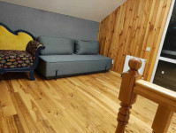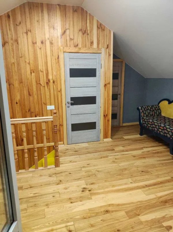 Будинок на одній ділянці з іншим, основним будинком!!! Суміжна ділянка!!! Перший поверх: передпокій, кухня-студія, сан вузол спільний, кімната; Другий поверх: вітальня, кімната, сан вузол спільний, в кімнатах другого поверху підлогова дошка, балкон 1м шириною. Кухня нова з новою варильною поверхнею, духовою шафою та холодильником 1м. Мікрохвильова піч, кавова машинка та пральна машинка не нові. В кімнаті на першому поверсі кондиціонер новий. В сан вузлі дзеркало з підігрівом та підсвіткою Опалення: весь перший поверх - тепла підлога , Другий поверх - батареї, в сан вузлі електрична тепла підлога. Є стабілізатор напруги Чудове місце розташування: 100м до лісу