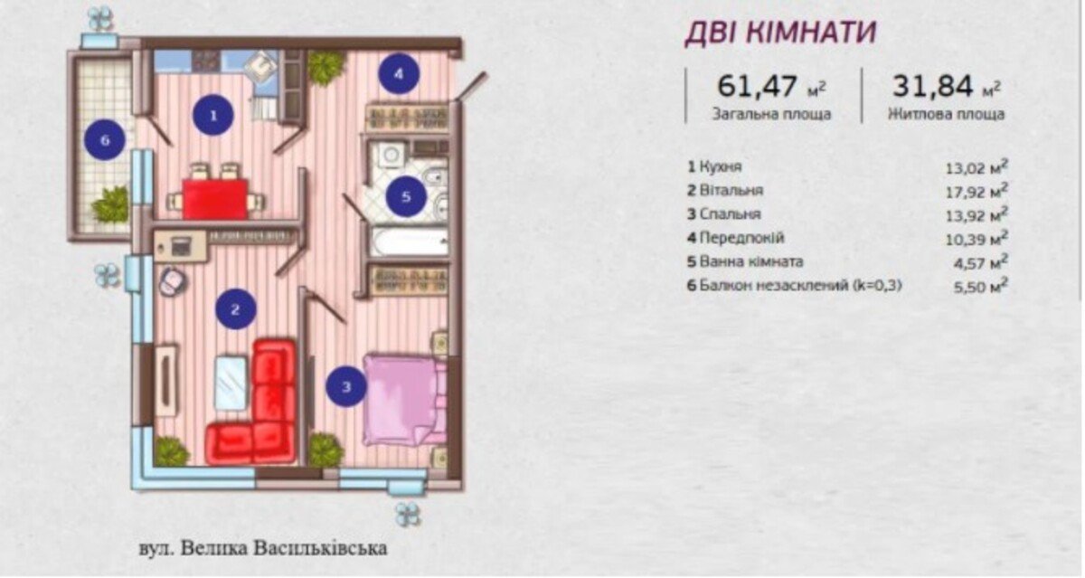 Площадь61 м²
