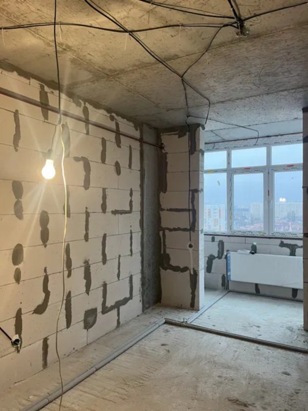 Видова квартира з панорамними вікнами. Квартира у стані після будівників. Але вже проведена проводка и вода, встановлені радіатори. Заведено електрику -5 кВт Газовий котел на опалення та гарячу воду. Гарні вхідні двері.