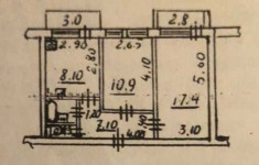 3/3 пов. будинку з цегли. Загальна площа 48,8 м2, житлова 28,3 м2. дві кімнати 10,9 м2 і 17,4 м2, простора кухня 8,1 з балконом, коридор 7,1 м2, санвузол роздільний. Велика кімната має лоджію (засклена). Висота стелі 2,8 м. Бойлер, лічильники.