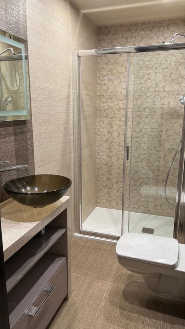 Площадь 105м2, спланирована как кухня-студия, 4 раздельные комнаты, 2 санузла (душ и ванная).