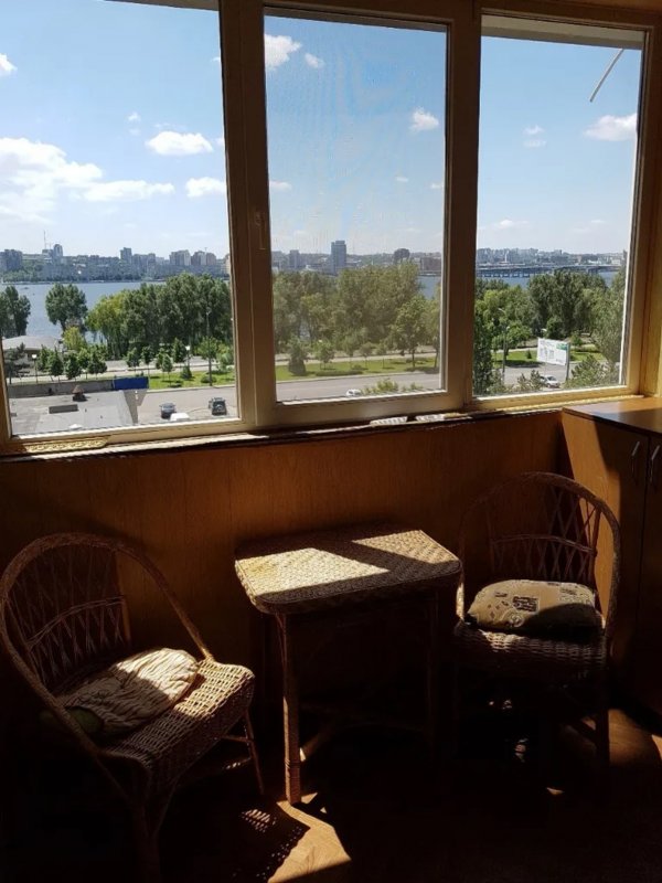 Площадь 46м2, комнаты раздельные, не угловая. Расположена на 6/9 этаже, с окон вид на реку и правый берег Днепра.