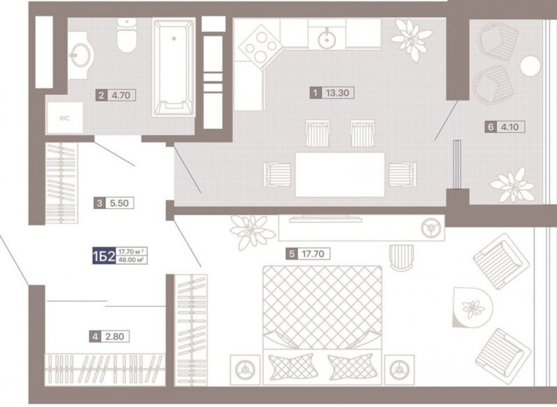 Площадь48 м²