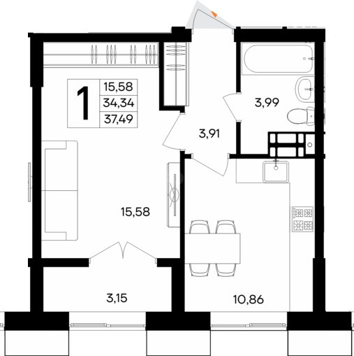Площадь37.49 м²