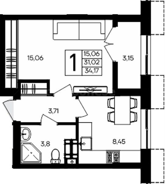 Площадь34.17 м²