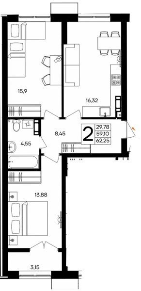 Площадь62.25 м²