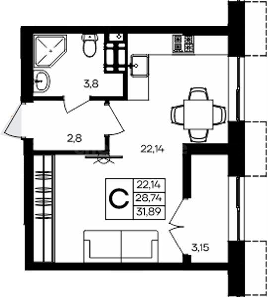 Площадь31.89 м²