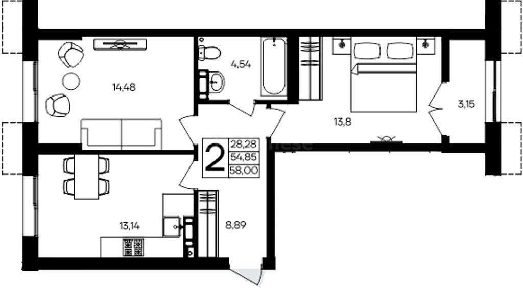 Площадь58 м²