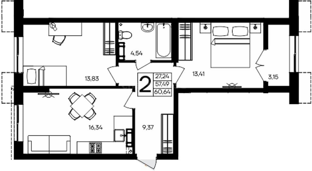 Площадь60.64 м²