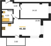 Площадь45.3 м²
