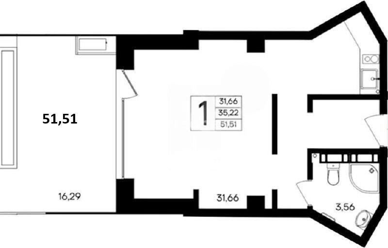 Площадь51 м²