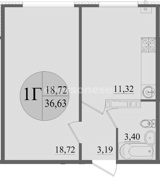 Площадь36.63 м²