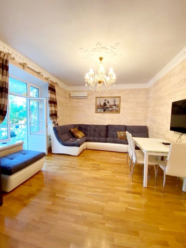 08717 Видео по запросу! 3 комнатная квартира на ул. Греческой. Кухня-гостиная-студия, 2 спальни, 2 санузла. Большая терраса с мебелью. 5 этаж, лифт. Качественный дорогой ремонт, новая мебель. Цена 1 200 у. е.more