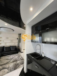 В квартирі виконано якісний ремонт та укомплектовано необхідними меблями та технікою. Вбудована кухня з побутовою технікою. Сауна, душова кабіна, ванна, гардеробна кімната, пральня, Тепла підлога в санвузлах, кухні та кімнаті.