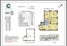Буд 10.10, продаж 3к квартири Площа: 76,92 м.кв. Поверх: 2 Планування: 3С3