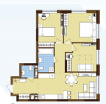 Загальна площа помешкання — 68м3. Зручне та функціональне планування: