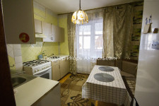 Квартира окнами выходит на Пушкинскую. Кухня совмещена с гостиная и отдельная спальня. Открытый стеклянный балкон на всю ширину квартиры, куда можно выйти и из спальни, и из гостиной.