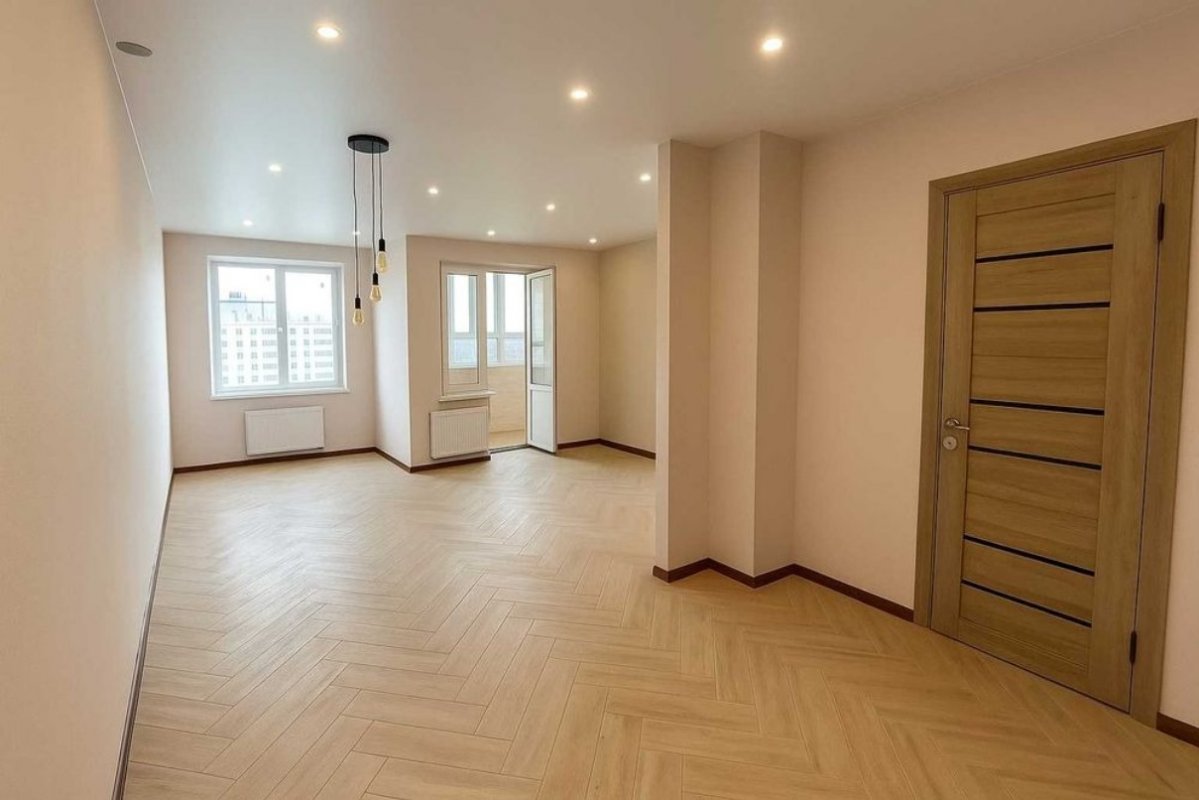 У квартирі виконаний базовий євро ремонт. На підлозі якісна плитка, натяжна стеля, шпалери, освітлення, на балконі є електро підігрів, ванна кімната обладнана сучасною плиткою унітазом та ванною.