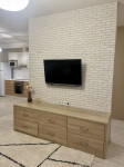 В кімнаті є шафа-купе, стіл, великий телевізор зі смарт, новий диван-трансформер.