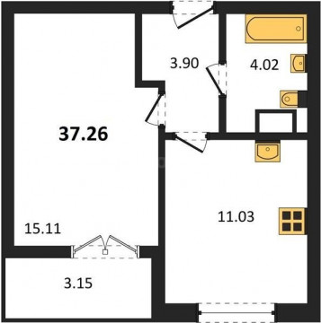 В продаже имеются квартиры в жилом комплексе "Семисчастье" премиум-класса. Общая площадь составляет 37,26 кв.м., при этом кухня - 11,03 кв.м. Высота потолков достигает 2,7 м.