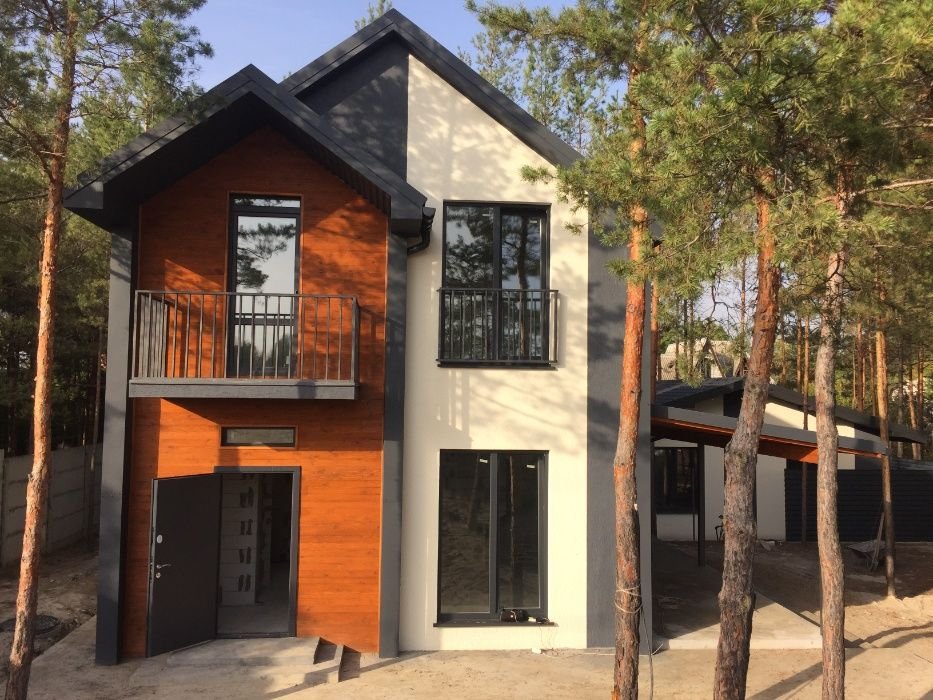 Дарницкий р-н. Осокорки. Метро "Славутич". С\Т "Злагода". Завозите мебель в новый дом!!! Современный дом в Скандинавском стиле! Модный дизайн фасада! Дом находится не далеко от метро "Славутич" (4 км.), на берегу озера (свой пляж, беседка, рыбалка с участка). Через дорогу еще одно озеро. С двух балконов шикарный вид! Нет шума и городской суеты. Место --одно из лучших в Осокорках. Соседи живут круглогодично. Рядом новые, хорошие постройки. Школы и садики совсем рядом. Дорога - асфальтирована. Площадь дома - 130 кв.м, площадь участка - 6,2 сот, плюс 2 сот прибережная зона. На первом этаже расположены: прихожая, холл, спальня 18 кв.м, санузел, большой зал-кухня на 29 кв.м, с выходом на террасу 19 кв.м, бетонная лестница на второй этаж. На втором этаже - 2 спальни по 15 кв. м. с выходом на большой балкон 19 кв. м.с видом на озеро, и одна - 20 кв.м. из которой также есть выход на видовой балкон на озеро. А также на втором этаже расположен санузел, коридор и лестница на чердак. Фундамент -лента на монолитной подушке накрыта плитой. Стены - из теплого пеноблока -300 мм, покрыты минватой 100 мм. Крыша утеплена минватой 200 мм и укрыта фальцем (не металочерепица). Свет заведен в дом 10кВт (три фазы). Выведена канализация, которая сведена в большую выгребную яму с дренажным полем, водостоки выведены в дренажные кольца, разведены дымоходы и вентиляция. Скважина 67 м с хорошей водой. Предоставляем рассрочку, кредит, а также делаем полный ремонт под завоз мебели по дизайнпроекту. Предложение от собственника.