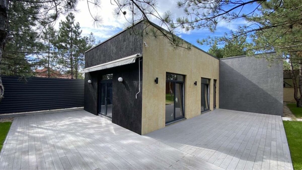 Продам дом hi tech 131 м2, козин, конча заспа, дамба.Дом строил для себя из качественных материалов, фундамент монолитный 30 см толщина, утеплён минватой, фасад - плитка из гибкой керамики , высота потолков 3,5 м ! Дом 131 м2 ( зал с кухней 60 м2, 2 санузла , топочная , 2 детские и мастер спальня с гардеробом 7м2 и санузлом). Участок 6,5 сот , с рулонным газоном и автополивом, на участке 28 сосен, бассейн 5,5*3,3 с подогревом , на террасе и возле бассейна террасная доска. Автоматические ворота , парковка во дворе на 2 авто. На участке стоит своё ТП на 30 кВт ! Септик на 15 м3, скважина 57 м! Стоит электрокотел , бойлер , Теплые пола! Автоматическая Маркиза на террасе!