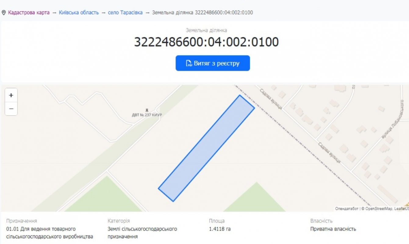 Ділянка 141 сотка с. ТарасівкаДілянка 141 сотка 48 на 297 м. Земля по генплану в межах села, вторичка, рівний, фасад зі сторони Крюківщини технічна дорога, зі сторони с. Тарасівка на даний момент грунтівка (вулиця Боярська), з перспективою на гравійну або асфальт. Не в оренді, не в санітарній зоні, не в зоні газопроводу, 250 м від траси. В даному районі ведеться активна забудова, поруч жилий масив Оришки, будівельні та продуктові магазини, недалеко велике озеро, зона відпочинку - пляж, човни, шашличня, рибалка. Біля ділянки нова забудова, дорога асфальтована, газ, електрика 15 м, недалеко ресторан "Охота", магазини, кафе "Крюк", Сто, Азс "Окко", зупинка маршрутки. Обміняю на житло в Фастівському, Обухівському районі, можливий обмін на 2 будинки (35-70.000 у. е - один будинок) + Ваша доплата. Ціна 1 сотки = 2 840 у. е. Оформлення продажу - за рахунок покупця. Призначення ділянкиСільськогосподарське призначення Id оголошення700823 Оголошення додано31.05.2024 Оголошення оновлено31.05.2024 Поділитися 400 000 $ Власник: Василь Дмитрович Повідомлення |