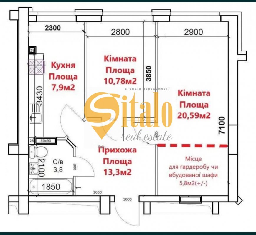 Площа58 м²