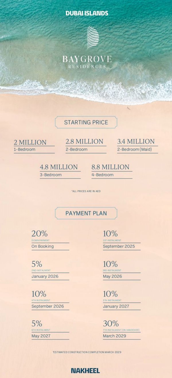 Оаэ, город Дубай Апартаменты Bay Grove Residences на берегу моряАЭ, город Дубай Апартаменты Bay Grove Residences на берегу моря Оаэ, город Дубай Срок сдачи: 1 кв. 2029 Описание общее: Апартаменты 80 — 193 м², с 1-4 спальнями Высота потолков 2.20м Двухуровневая столовая Кухня Спальня Терраса Гостиная Ванная комната Гардеробная Прачечная Вид на море План оплаты: ▪️Гибкие условия рассрочки 70/30 ▪️Первоначальный взнос 20% ▪️В период строительства 50% ▪️При завершении строительства 30% Расчет можем принимать в любой валюте, в любой стране цена: от 540 000 $ Описание собственности: Описание общее: Крытый паркинг Детский бассейн Эксклюзивный океанский бассейн Фитнес-центр Охрана и система видеонаблюдения Зеленый парк и сад Детская игровая площадка Зона коворкинга Инфинити-бассейн Частный пляж Поля для гольфа Груминг салон Променад, утопающий в пышной зелени Al Mamzar Beach Park - 25 минут; Dubai International Airport - 15 минут; цена: от $ 540 000 Тип об'єктуОкрема квартира Id оголошення747467 Оголошення додано01.04.2025 Оголошення оновлено01.04.2025 Поділитися 540 000 $ АН 'R12 realty' Повідомлення |